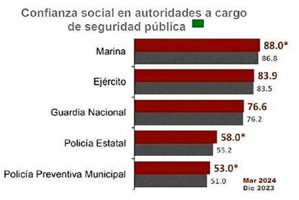 Aprueba 80% a Marina y Ejército en combate a delincuencia: INEGI