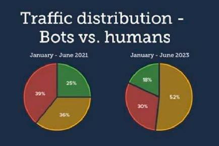 Aunque la cifra del tráfico de bots es enorme, tuvo un decrecimiento de casi 10% comparado con 2023, cuando alcanzó 53%.