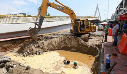 La primera regido ra explicó que, el personal del Sistema de Agua y Sa neamiento (SAS) efectúa trabajos de reparación en el socavón, el cual comprende la instalación de la tubería existente de 1.22 m. de diá metro, entre otras acciones.