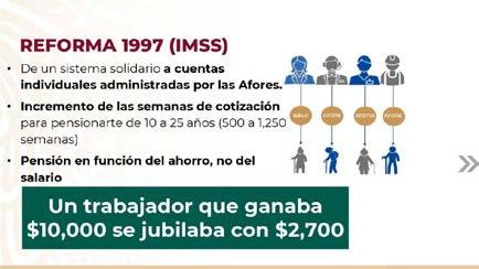 ¿Cómo?, con un mecanismo para que pasaran de la afore al IMSS y del IMSS al trabajador, y la otra es que el mecanismo que se estableció en la reforma del 20 implicaba un traspaso importante. Esto es lo que ha