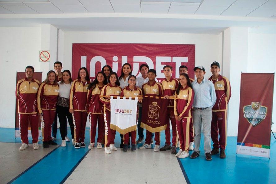 La directora general del Injudet, Jessyca Mayo Aparicio encabezó la ceremonia en la que los deportistas recibieron con mucho orgullo el escudo de Tabasco como bandera.