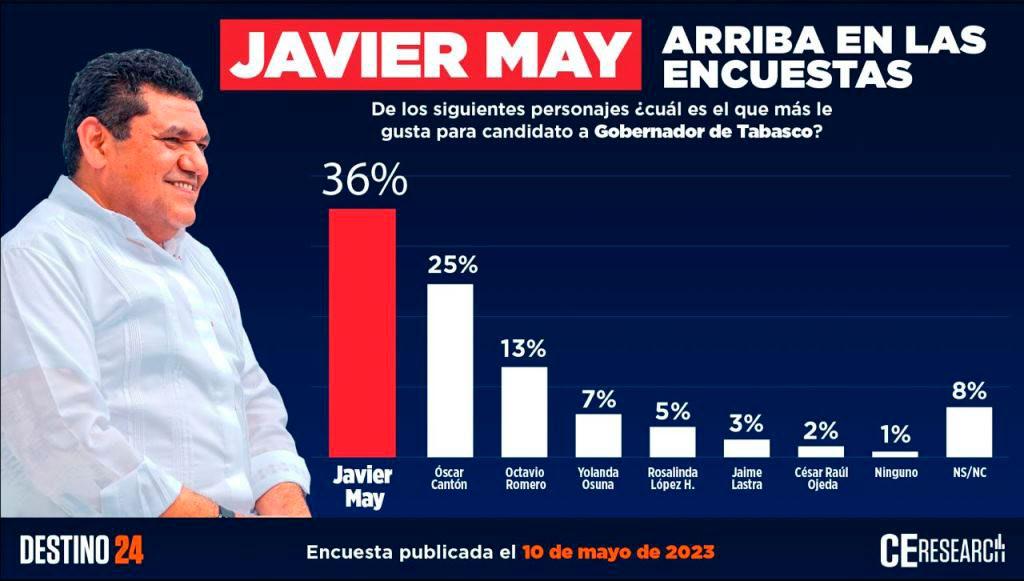 Javier May, favorito y mejor posicionado en morena rumbo al 2024: CE RESEARCH