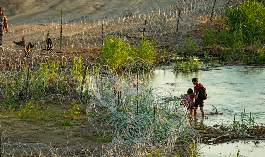 Niños migrantes en las orillas del río Bravo mientras intentan entrar en Eagle Pass (Texas, EE.UU.), 6 de julio de 2023.