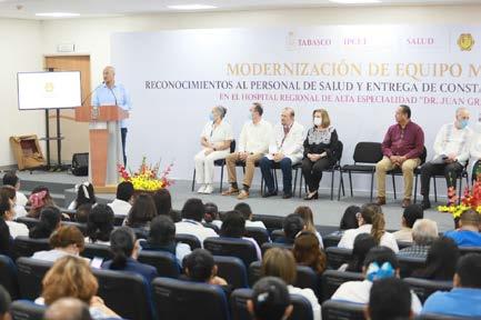 n‘La salud no es un gasto, es una inversión que reditúa en el bienestar, la seguridad y en las sonrisas de los tabasqueños’, subraya el gobernador nDe la bolsa de recursos, destacan casi 100 mdp en equipos y mobiliario entregados al Hospital ‘Juan Graham’ y la Torre Oncológica nEn visita por el nosocomio, honra trayectoria médica de distinguidos especialistas, y entrega constancias de protección civil a personal capacitado