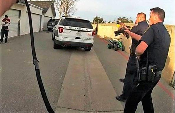 El jefe de policía de Oxnard, Jason Benites, explicó el uso de armas “menos letales”, como una pistola eléctrica Taser y una pistola que dispara balines, que los oficiales están entrenados para usar como primera línea de autodefensa.