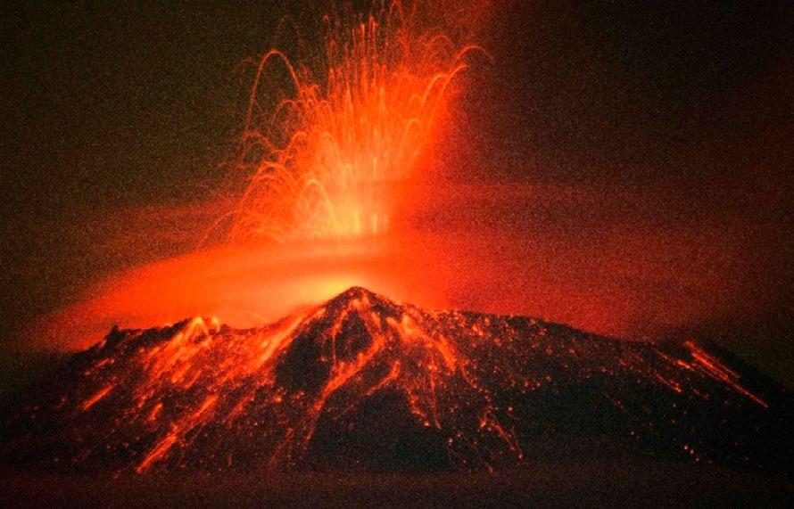 Materiales incandescentes, ceniza y humo son arrojados por el volcán Popocatépetl