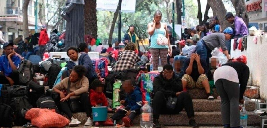 Migrantes continúan en la plaza Giordano Bruno, de la colonia Juárez, en la Ciudad de México