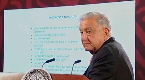 “Tim Golden, ya sé que no puedes revelar tus fuentes pero nada más que nos digas si fueron los de abajo, agentes o los de la DEA” refirió el mandatario.