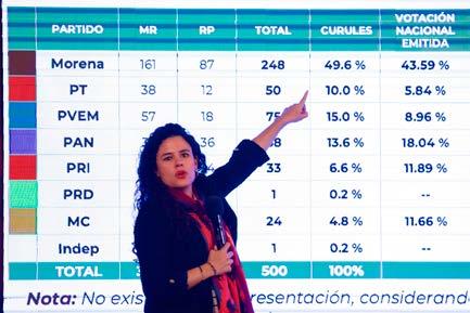 acerque más al entero. Finalmente, la secretaria remarcó que Movimiento Regeneración Nacional no violenta las reglas de la Constitución ni los criterios de representación y tampoco rebasa los límites máximos en la asignación de plurinominales. “Este criterio se ha sostenido en todas estas elecciones: en el 2009, en el 2012, en el 2015, en el 2018, en el