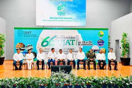 Los festejos por el sexagésimo sexto aniversario de la UJAT que concluyen el 29 de noviembre, consideran la realización de 126 actividades, en la que se incluyó la presentación de la nueva imagen de la página web y del prototipo del asistente virtual Kambot GPT, herramientas con las cuales se atienden las necesidades de renovación e inclusión de inteligencia artificial que exigen los usuarios. Al evento asistie-