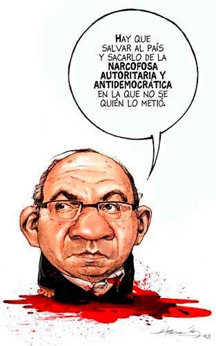 emprendida por García Luna y Felipe Calderón, por las madres que buscan aún a sus hijos, por los periodistas desterrados por García Luna.”