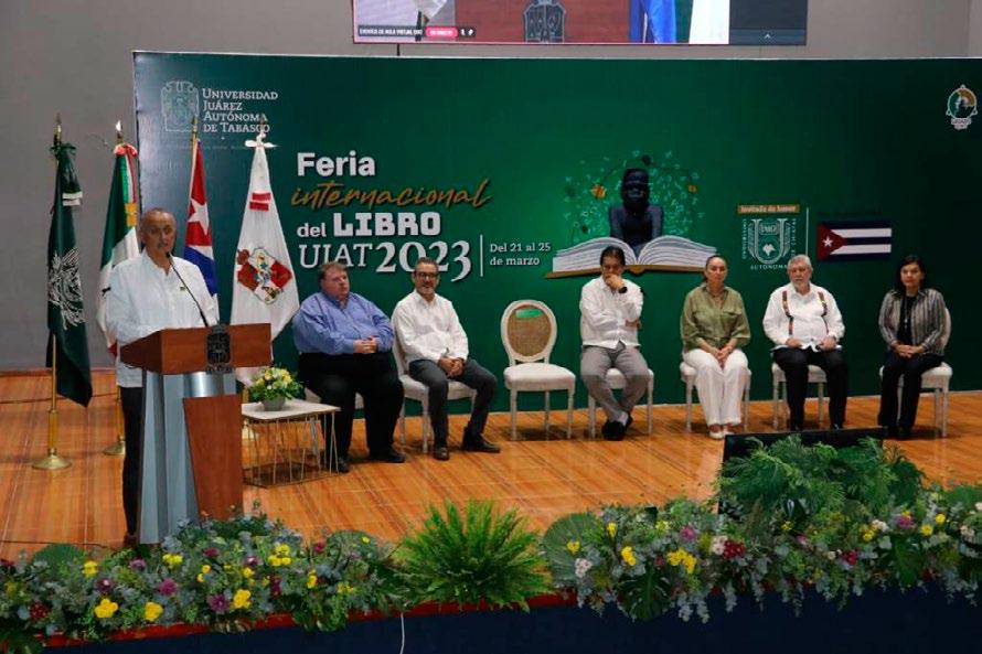 académicas asentadas en Jalpa de Méndez, Comalcalco y Cunduacán, para que los jóvenes puedan abrevar de la cultura, el conocimiento y el arte de la delegación cubana. El rector dio a conocer que en la edición 2023 de la FILUJAT participan 50 casas editoriales, que ofertan más de 12 mil títulos, mientras que los asistentes podrán disfrutar de 30 expositores y la presentación de un total de 90 libros; en total serán más de 150 actividades ‘que nos alientan porque son un producto del esfuerzo y del trabajo conjunto’. Dentro de esta gama, abundó, sobresale el ‘Foro de los Juchimancitos’, para que los niños hasta de 10 años puedan empezar a agarrar el amor al arte, el amor a la lectura.