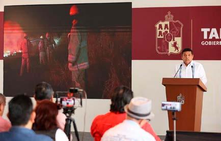 comentó que, de manera coordinada personal de Bomberos, de la Comisión Estatal de Agua y Saneamiento (CEAS) y la Comisión Nacional del Agua (Conagua), así como del equipo de contraincendios de Pemex y del Ayuntamiento de Centro, continúan trabajando en el lugar