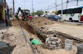 Asimismo, se lleva a cabo la construcción de tres pozos de visita, que permitirán la constante limpieza de las líneas de drenaje por medio de camiones vactor; así como la instalación de 114 metros de tubería de 10 pulgadas de diámetro.
