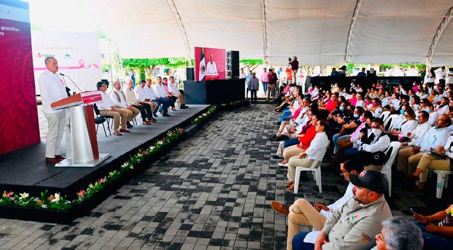 Romero Oropeza señaló que esta activi dad forma parte las ac ciones de responsabili dad social destinadas a mejorar la cobertura de los servicios de salud en las comunidades don de Petróleos Mexicanos tiene actividad operati va. Es así que, de un to tal de mil 200 millones de pesos invertidos en programas, obras o ac ciones en beneficio de las y los tabasqueños, 421 millones se han des tinado al rubro de la sa lud, es decir, el 35% de la inversión.