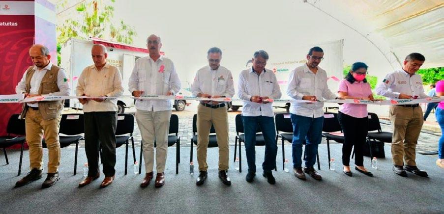 Frente a Marcos Herrería Alamina, di rector Corporativo de Administración y Servi cios, y Ángel Cid Mun guía, director general de Pemex, Exploración y Producción, el titular de la empresa petrolera, Octavio Romero resaltó que esta actividad forma parte de las acciones de responsabilidad social destinadas a mejorar la cobertura de los servi cios de salud en las co munidades marginadas de Tabasco.