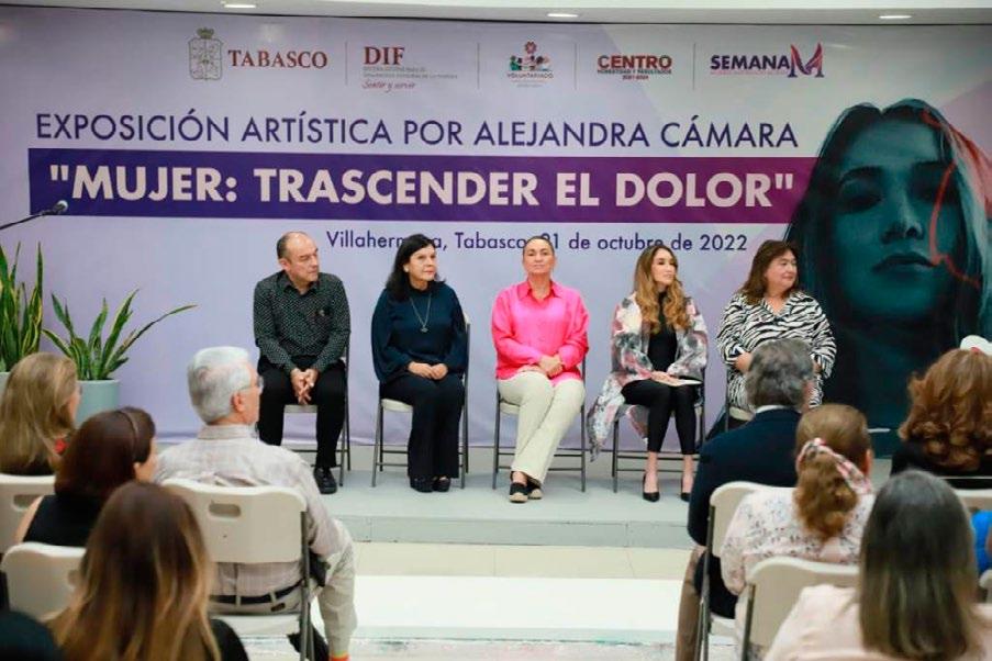 nLa presidenta del Sistema DIF Tabasco, inauguró la Exposición Artística “Mujer: Trascender el Dolor”, evento con el cual, dio fin la Semana M, “Mujeres Inspirando Mujeres”.nDurante el evento, la esposa del gobernador Carlos Manuel Merino Campos, aprovechó para invitar a la campaña que el Sistema DIF Ta basco, pondrá en marcha este próximo lunes para apoyar a los hermanos de Chiapas y Tabasco, afectados por las lluvias de los últimos días.