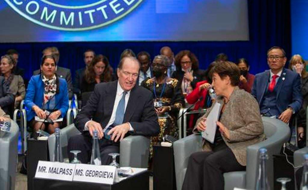 David Malpass, presidente del Banco Mundial y Kristalina Georgieva, directora gerente del Fondo Monetario Internacional, organismos cuyas estrategias hundieron a la economía global y especialmente a las naciones más pobres.Foto de la página del BM