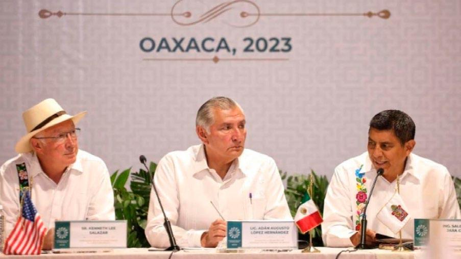 El mandatario tabasqueño participó en la VI Reunión Extraordinaria de la Conferencia Nacional de Gobernadores celebrada en el estado de Oaxaca; estuvieron presentes el secretario de Gobernación, Adán Augusto López Hernández y autoridades del país norteamericano.