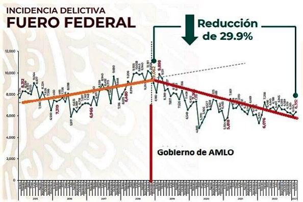 Bajan 29.9% delitos del fuero federal con AMLO