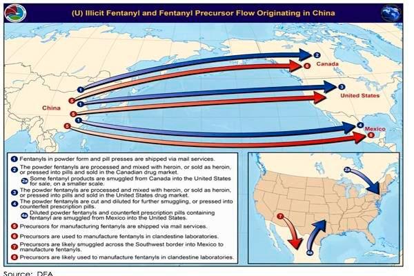 -“…,la mayoría del fentanilo que ingresa a EUA es introducido de contrabando por inmigrantes no autorizados que cruzan la frontera ilegalmente”.