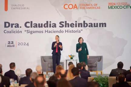 CIUDAD DE MÉXICO, 22 DE ABRIL DE 2024.- Claudia Sheinbaum, candidata a la Presidencia de la República, convenció con su proyecto de gobierno al Council of the Americas (COA), una organización conformada por 220 empresas multinacionales y globales.