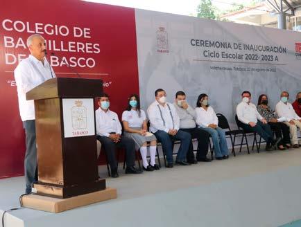 El gobernador presidió la ceremonia de inauguración del Ciclo Escolar 20222023 A del Colegio de Bachilleres de Tabasco, en la que exhortó a los más de 61 mil jóvenes matriculados a mantener el entusiasmo y la perseverancia para construirse un futuro próspero
