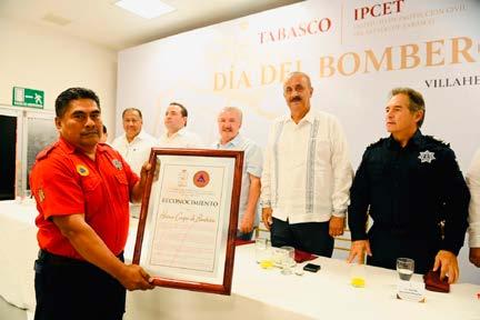 “Ratifico una vez más, el apoyo y solida ridad del Gobierno del Estado para seguir me jorando la infraestructura e impulsar los servicios que presta el H. Cuerpo de Bomberos, para que sigan siendo de gran ca lidad”, aseguró en un de sayuno que sostuvo este lunes con integrantes de ese cuerpo, uno de los más reconocidos y admi rados por los tabasque ños. Puntualizó que además, los bomberos son fuente de inspiración en el servicio público por la entrega, profesionalis mo, dedicación, sacrifi cio y vocación. Por eso, apuntó, es muy merecido este homenaje en el que se les reconoce su valor y heroísmo en momentos críticos que viven los ciu dadanos.En la ceremonia, el mandatario hizo un reconocimiento al direc tor de Bomberos, Miguel May Hernández, y en tregó reconocimientos a nueve servidores pú blicos más del H. Cuer po de Bomberos, por su espíritu y esfuerzo en su labor desempeñada du rante más de 20 años de antigüedad al servicio del Gobierno del ResaltóEstado.que en los últimos años se han atendido las demandas y necesidades del Cuerpo de Bomberos, haciendo inversiones en equipa miento, capacitación y adiestramiento para el personal de Protección Civil. Y aún seguiremos mejorando sus condicio nes, tal y como lo expresé a integrantes del Consejo Estatal de Protección Ci vil, porque a mayor pre vención menor riesgo, enfatizó en compañía de los secretarios de Gobier no, Guillermo del Rivero León, y de Seguridad y Protección Ciudadana (SSPC), Hernán Bermú dez Requena.Merino Campos resaltó que con mayor equipamiento, mejor in fraestructura y con más conocimientos actualiza dos, el personal de Pro tección Civil, bomberos y brigadistas, ayudarán a disminuir los riesgos, pro tegiendo su vida y la de quienes estén en situa ción de“Graciaspeligro. a la Cuar ta Transformación de la vida pública de México, damos ejemplo de lo que se debe hacer con recti tud, moralidad, ética, ho nestidad y humanismo, porque contamos con servidores públicos com prometidos con la trans formación y reconcilia ción de Tabasco, que no tienen precio y resisten la tentación de la corrup ción, sobreponiendo el bienestar del pueblo”, su brayó. Junto al presiden te de la Junta de Coordi nación Política del Con greso local, Jaime Las tra Bastar, el Ejecutivo puntualizó que este es el camino a seguir, justi cia y transformación para salvar vidas, proteger a la población y vivir con seguridad, tranquilidad y paz. Tras ofrecer una breve reseña de cómo inició el H. Cuerpo de Bomberos en Tabasco, el coordinador general de Protección Civil, Mauro Winzing Negrín, señaló que la ceremonia de este día es un pequeño ho menaje que se realiza a todos los integrantes del cuerpo, que durante mu chos años le ha entrega do su servicio a los tabas queños.Explicó que ac tualmente cuentan con 131 bomberos, repartidos en cinco regiones: Cen tro, Huimanguillo, Sierra, Comalcalco y Tenosique, quienes atienden incen dios en inmuebles y pre dios por el estiaje, fugas de gas, inundaciones, caídas de postes y árbo les, capturas de reptiles, y toda una gama de nece sidades de la población. Ante Emilio Con treras Martínez de Es cobar, diputado local, Winzing Negrín recordó que al inicio del presente año, el mandatario equi pó con mayor capacidad al H. Cuerpo de Bombe ros, que ha permitido te ner mayor capacidad de respuesta y minimizar los riesgos y afectaciones en toda la“Porentidad.eso, el Gober nador Carlos Manuel Me rino Campos agradece a todos los bomberos su dedicación, esfuerzo, en trega, servicio, y pedirles que nos sigan ayudando y sigamos aportando esa capacidad de servicio en beneficio de la sociedad tabasqueña”, aseveró. Luego de recibir su reconocimiento por más de 20 años de ser vicios ininterrumpidos, el director del H. Cuerpo de Bomberos no dudó en presentar a las autorida des estatales a los valien tes bomberos y volunta rios, quienes nunca han dudado en arriesgar su integridad física para sal vaguardar la vida y patri monio de las y los tabas queños.