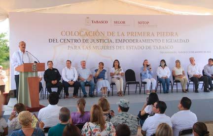 Estoy muy comprometido y agradecido con todas las niñas y mujeres tabasqueñas, por lo que quien abuse, agreda y violente en contra de ellas, recibirá todo el peso de la ley y la fuerza del estado, afirma el gobernador. (Foto: Jorge Hernández) VHSA. TAB., AGOSTO 22 DE 2022.- Con la colo cación de la primera pie dra de construcción del Centro de Justicia, Em poderamiento e Igualdad para la Mujeres de Tabas co, el Gobernador Carlos Manuel Merino Campos ratificó su compromiso de apoyar y proteger a todas las tabasqueñas, “pues no vamos a tolerar nin gún abuso o arbitrariedad contra ninguna de ellas, porque el que toque o se meta con una, lo hace con todosEstoynosotros”.muy com prometido y agradecido con todas las niñas y mu jeres tabasqueñas, por lo que quien abuse, agreda, violente o atente contra una de ellas, recibirá todo el peso de la ley y la fuer za del estado, aseguró al ofrecer una disculpa a todas las féminas, porque en tiempos y gobiernos anteriores no se tomó la decisión y se edificó un centro de Acompañadoatención. de la titular de la Comisión Nacional para Preve nir y Erradicar la Vio lencia contra las Muje res (Conavim), Fabio la Alanis Sámano, el mandatario agradeció el apoyo del hoy secretario de Gobernación, Adán Augusto López Hernández, quien desde el inicio de su gobierno en Tabasco, fue el principal impulsor de la construcción del centro. Destacó que fue el 2 de febrero del presen te año, cuando firmó y se publicó en el Periódico Oficial del Estado, la crea ción del Centro de Justi cia, Empoderamiento e Igualdad para las Muje res de Tabasco, como un órgano desconcentrado de la Secretaría de Go bierno, dotado de autono mía técnica y de gestión, y con la supervisión de la propia JuntoConavim.a la presi denta del Sistema DIF Tabasco, Guadalupe Castro de Merino, explicó que para tal fin se destinó un inmueble con una su perficie de 1.3 hectáreas, que albergará una cons trucción de mil 50 metros cuadrados, que se estima estará concluida para fi nales de este año o prin cipios del siguiente año. Merino Campos informó que el centro ser virá para coordinar, arti cular y vincular interinsti tucionalmente a los entes públicos que ejerzan la función de procuración de justicia, seguridad pública, educación, sa lud, bienestar, desarrollo social y trabajo, y otras áreas. “Sigo sosteniendo que seremos contunden tes en nuestras acciones, generando las condicio nes necesarias para que las mujeres vivan en ar monía, paz y seguridad, alejadas de la violencia física, mental o patrimo nial, porque esta es la in signia y modelo a seguir de un gobierno emanado de la Cuarta Transforma ción de la vida pública”, subrayó.En presencia del titular del Tribunal Su perior de Justicia (TSJ), Enrique Priego Oropeza, resaltó que estamos a meses de ver realizado el centro, una acción que se sumará a los que se viene haciendo en todas y cada una de las depen dencias para promover la incorporación de las mu jeres a la vida productiva, PASA A LA 3...
