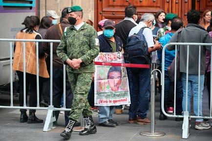 Padres de los 43 estudiantes de la Normal “Isidro Burgos” entran a Palacio Nacional, el 18 de agosto pasado CIUDAD DE MÉ XICO, AGOSTO 22 DE 2022.- La Secretaría de la Defensa Nacional (Sedena) fue notificada oficialmente por la Fiscalía General de la República (FGR) de las órdenes de aprehensión giradas en contra de 20 de sus elementos, posi blemente implicados en el CasoSeAyotzinapa.tratademilita res pertenecientes a los batallones 27 y 41 de in fantería, quienes estuvie ron de guardia cuando desaparecieron los 43 estudiantes de la Normal “Isidro Burgos”, en Iguala, Guerrero.El juez segundo de procesos penales fe derales, con sede en To luca, Estado de México, autorizó 83 órdenes de aprehensión en contra de funcionarios de los tres órdenes de gobierno que intervinieron en la investi gación de los hechos, in cluyendo los 20 militares. En la lista, el de más alto rango es el general Alejandro Sa avedra Hernández, co mandante de la 35 Zona Militar, con sede en Chil pancingo, quien según el informe de la Comisión de la Verdad tuvo cono cimiento de lo hechos de la noche del 26 al 27 de septiembre de 2014, pues fueron captados por las cámaras del C4, a las cuales tenía acce so directo.Meses después, Saavedra Hernández fue ascendido a General de División, nombrado co mandante de la Región Militar, posteriormente fue designado Inspector y Contralor General del Ejército y Fuerza Aérea, y luego jefe del Estado Mayor de la Defensa Na cional, el 30 noviembre de 2017, finalmente fue director del Instituto de Seguridad Social para las Fuerzas Armadas (ISSFAM), hasta el 2 de marzo de 2021.