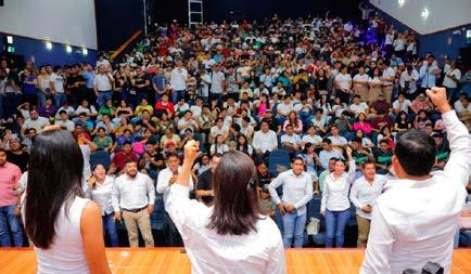 destaco que hoy Morena, en Centla se postula 3 a 1 con un 33.1% por encima de sus adversarios; puntualizo que hay que cuidar las casillas, mantenerse en unidad y pacíficamente este 2 de junio y salir a votar 6 de 6, para así construir el segundo piso de la cuarta transformación.