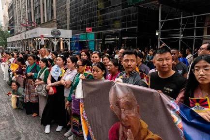Centenares de fieles, muchos vestidos con el traje típico tibetano, aguardaron bajo un calor sofocante en los alrededores del Hotel Park Hyatt, cerca de Central Park