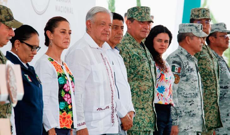 Acompañado de la futura comandanta suprema de las Fuerzas Armadas, recordó el lema de la institución que la siguiente semana cumplirá cinco años de garantizar la seguridad pública en México.