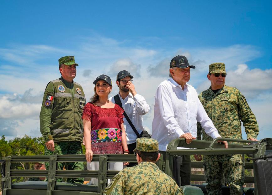 El presidente, Andrés Manuel López Obrador, publicó un video donde, abordó de un vehículo sin puertas, y en el que va acompañado por personal militar, recorre distintas áreas internas y externas de la terminal donde laboran trabajadores ataviados con uniformes militares. Las obras ya están fase de acabados, indica el mandatario federal. Domingo 24 de Septiembre de 2023 | Año XXVIII | N° 11385 | |