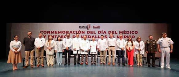 Reconociendo la vocación y trayectoria de los “guardianes de la salud”, el gobernador entregó la Medalla al Mérito Médico 2024 a los doctores Argeo Romero Vázquez, de Macuspana; Drusso López Estrada, de Comalcalco; y Romeo Castillo Castellano, de Balancán, por sus contribuciones a la medicina tabasqueña. El secretario de Salud, Alejandro Calderón Alipi, recalcó que el Gobierno del Pueblo está comprometido con la consolidación de un sistema de salud más fuerte e inclusivo, por lo que convocó a todos los integrantes del sector a contribuir al fortalecimiento del nuevo modelo MAS-Bienestar, el cual asegurará que cada tabasqueño, sin importar dónde viva, tenga acceso a una atención médica de calidad.