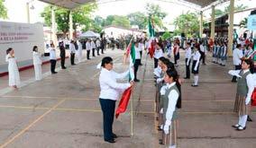 En el Centro Integrador No. 1 de la colonia El Recreo en Villahermosa, y ante estudiantes de las 25 escuelas primarias y secundarias abanderadas, resaltó que la Bandera de México simboliza la independencia, el honor y la soberanía nacional, además que “nos une,