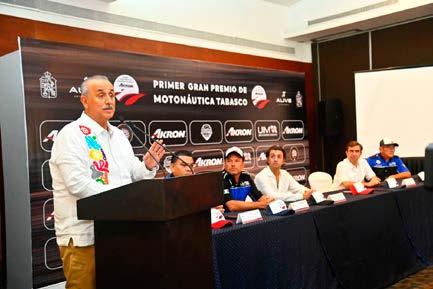 En la presentación del Primer Gran Premio de Motonáutica de Tabasco, organizado por el Club Náutico y Deportivo del Sureste y convocado por la Federación Mexicana de Motonáuticas, el mandatario remarcó que nuestro estado, por su abundancia de agua, es un lugar propicio para este tipo de competencias que atraen al turismo deportivo.