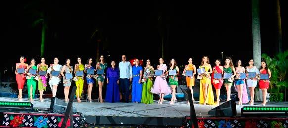 y la presidenta del Sistema DIF estatal, Guadalupe Castro de Merino, fueron los encargados de colocar a cada una de las exponentes de la belleza tabasqueña el emblema que también constituye el agradecimiento por el compromiso y dedicación de cada una de ellas.