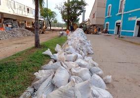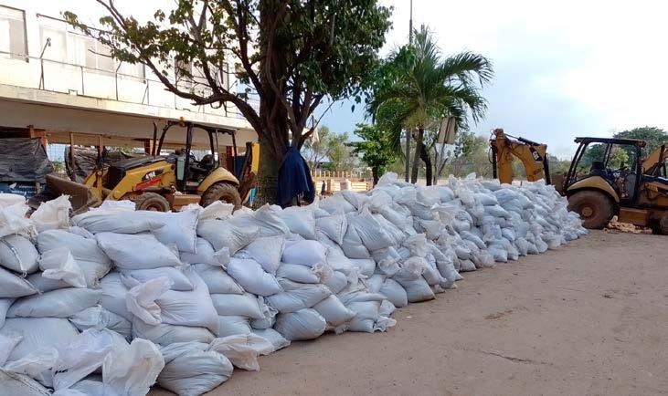 Trabajadores comenzaron con el llenado de costales, para prevenir cualquier situación que llegase a ocurrir con el tema de las lluvias. Es sólo para tener un Centro de Acopio y en el momento que se necesiten poder usarlos y así evitar demoras en el llenado de los sacos. (Foto: Jorge Hernández)