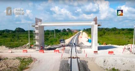 durmientes, que después son colocados sobre el balasto.Adicionalmente, a lo largo de este tramo, sigue la construcción de 71 pasos generales, 40 obras de drenaje trans versal, 11 pasos de fauna y tres viaductos. El Tren Maya avanza.