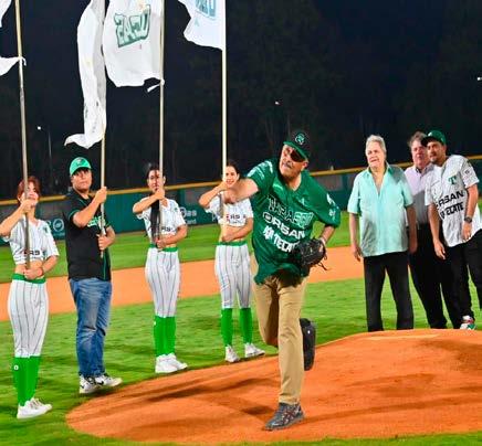 del empresario beisbolero Carlos Bremer, y la presidenta del Sistema DIF estatal, Guadalupe Castro de Merino, desde la loma de los disparos, en función de pitcher Carlos Merino tiró la primera bola hacia el plato de ‘home’, donde el presidente del Tribunal Superior de Justicia (TSJ), Enrique Priego Oropeza, desempeñó la labor de receptor.