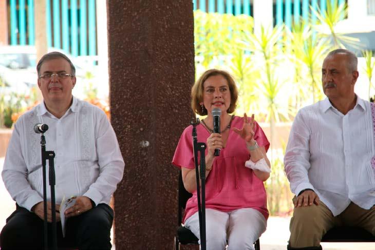 En su participación en Los Fandangos por la Lectura en la zona indígena de Villa Tamulté de las Sabanas, Beatriz Gutiérrez insistió en que decidió usar los micrófonos para evitar que sigan propagándose noticias falsas hacia su esposo. “No podía yo no tocar este tema frente a la cantidad de dardos que han lanzado”, agregó. (Foto: Jorge Hernández)