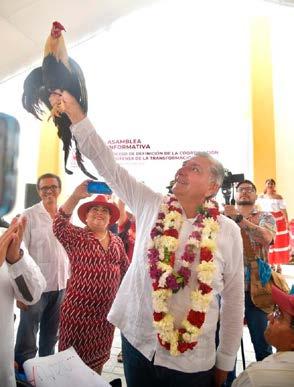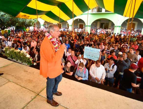 lado de Andrés Manuel López Obrador, y por ello sabe cómo hacer política casa por casa, pueblo por pueblo, plaza por plaza, sin necesidad de viáticos y con la sola ayuda y generosidad del pueblo, de los más humildes, quienes sin problema les invitaron en su momento, y lo hacen ahora con él, un taco, un plato de arroz, de frijol, una tlayuda con un poco de frijol colado untado; “con ese tenemos para seguir construyendo la Cuarta Transformación”, aseguró.