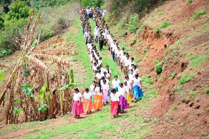 coloridas y sus blusas bordadas escalan las montañas, trabajan en los surcos, cortan y acarrean la leña para sus fogones de tres piedras, solo cultivan su lengua materna porque el Estado les ha negado el derecho a la educación. Mantienen viva la memoria de sus esposos e hijos, a pesar de que las han confinado a sobrevivir fuera del presupuesto público. 14