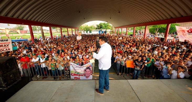 en la elección se atropelló al pueblo. Pero les quiero decir, hay que tener confianza, ya se impugnó y sigue su curso, van a ser las instancias quienes resuelvan esta controversia”, explicó May Rodríguez a los cientos de simpatizantes que acudieron al acto de agradecimiento del gobernador electo en Jalpa de Méndez.