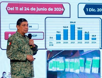 Las y los integrantes del Ejército y Fuerza Aérea Mexicanos, de la Secretaría de Marina y la Guardia Nacional también evitaron la comercialización de 721 mil 252.6 kilogramos de metanfetaminas entre diciembre de 2018 y el 24 de junio de este año, reportó el titular de la Defensa Nacional, Luis Cresencio Sandoval González.