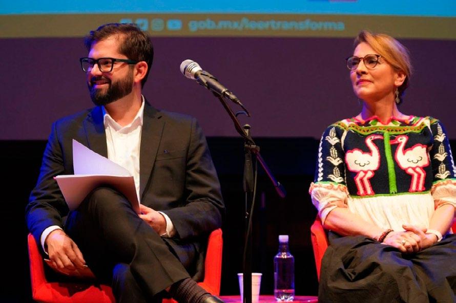 En esas activi dades -un fan dango por la lectura en el Centro Cultural Gabriela Mistral y en la develación de la réplica del mural realizado por el jalisciense Roberto Montenegro, participó el presidente chileno, Gabriel Boric.