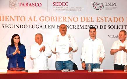 El mandatario tabasqueño recibió este lunes el reconocimiento que el Instituto Mexicano de la Propiedad Industrial (IMPI) entregó al Gobierno del Estado por este logro que refleja que las estrategias económicas emprendidas en la entidad para promover la innovación ‘están dando buenos resultados’.