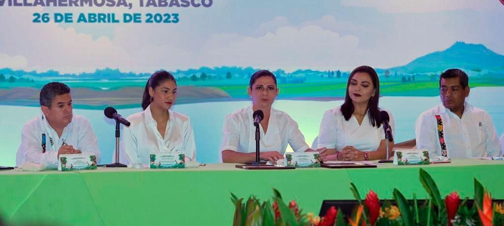 Vhsa.Tab., 26 de abril de 2023.- La directora de la Comisión Nacional de Cultura Física y Deporte (Conade), Ana Gabriela Guevara Espinoza, reconoció el esfuerzo del gobernador Carlos Manuel Merino Campos para que Tabasco sea sede de 12 disciplinas de los Juegos Nacionales Conade 2023, que inician el próximo 7 de junio.