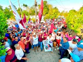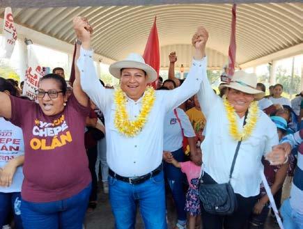 lázquez y las aspirantes a una diputación federal, Rocío Hernández López y una diputación local, Bianca Mayte López Castillo realizaron en la ranchería Nabor Cornelio, visitas de casa por casa, en donde platicaron y es-